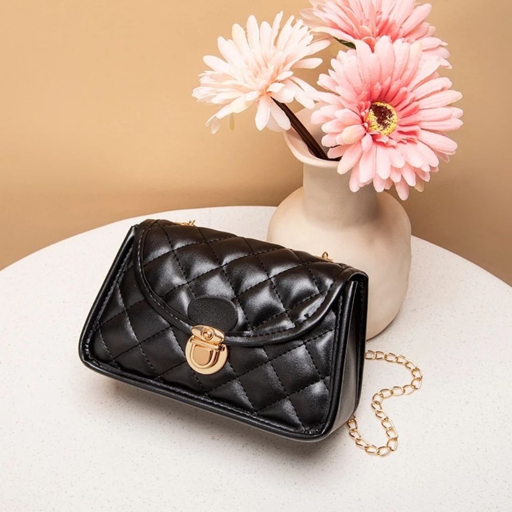 Mini flap crossbody with quilted body, secure lock closure, and chain strap. Great for dinners, events, or quick errands when you only need the basics.