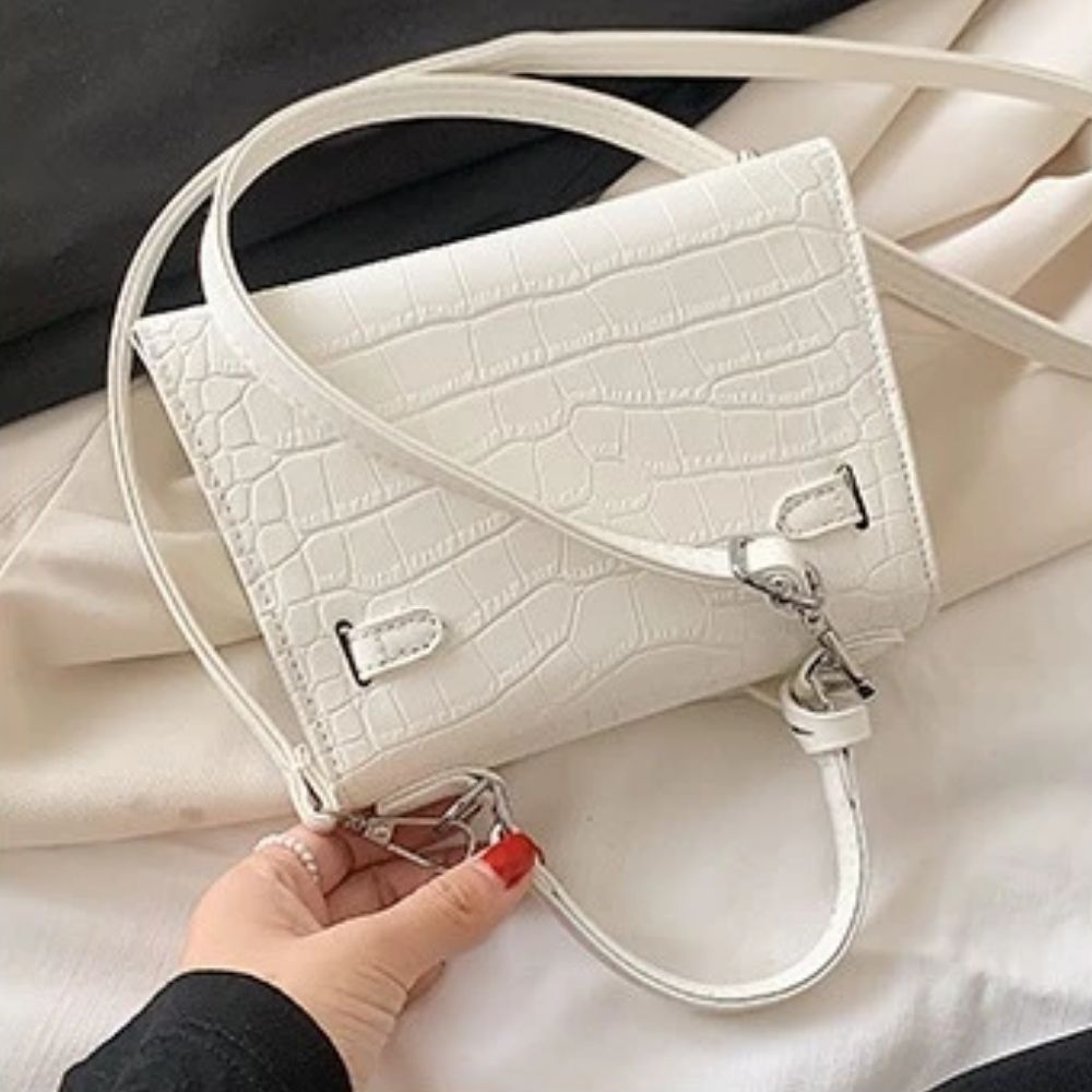 A chic croc-texture mini satchel that elevates outfits with a glossy, classy finish.